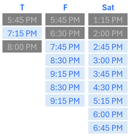 Grayed out blocks are unavaliable.
